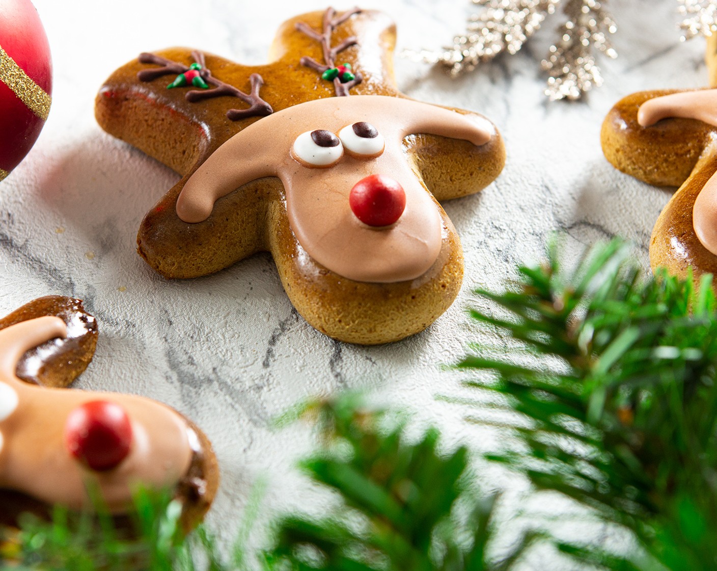 Anschliessend für das Geweih die Beine entsprechend mit dunkelbraunem Royal Icing dekorieren.