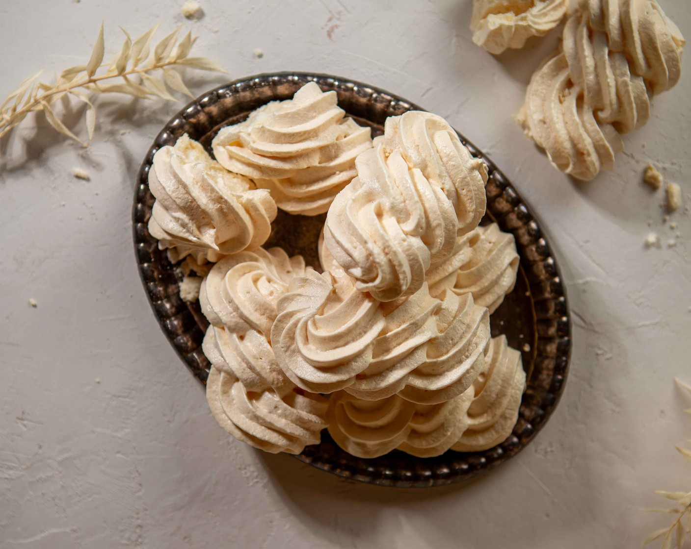 Ein einfaches und köstliches Rezept für zarte Meringues, mit einer feinen, natürlichen Karamellisierung. Die leichte Knusprigkeit aussen und die luftige, weiche Textur innen machen diese Meringues zu einem unwiderstehlichen Genuss. Perfekt als süsser Snack oder als Krönung für Desserts wie Torten und Kuchen.