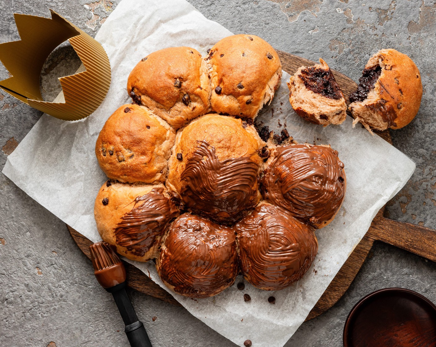 Back dir deinen Dreikönigskuchen selbst und veredle ihn mit Schokolade im Teig und einem feinen Aufstrich aus Schokolade. Kuchen für Queens und Kings.