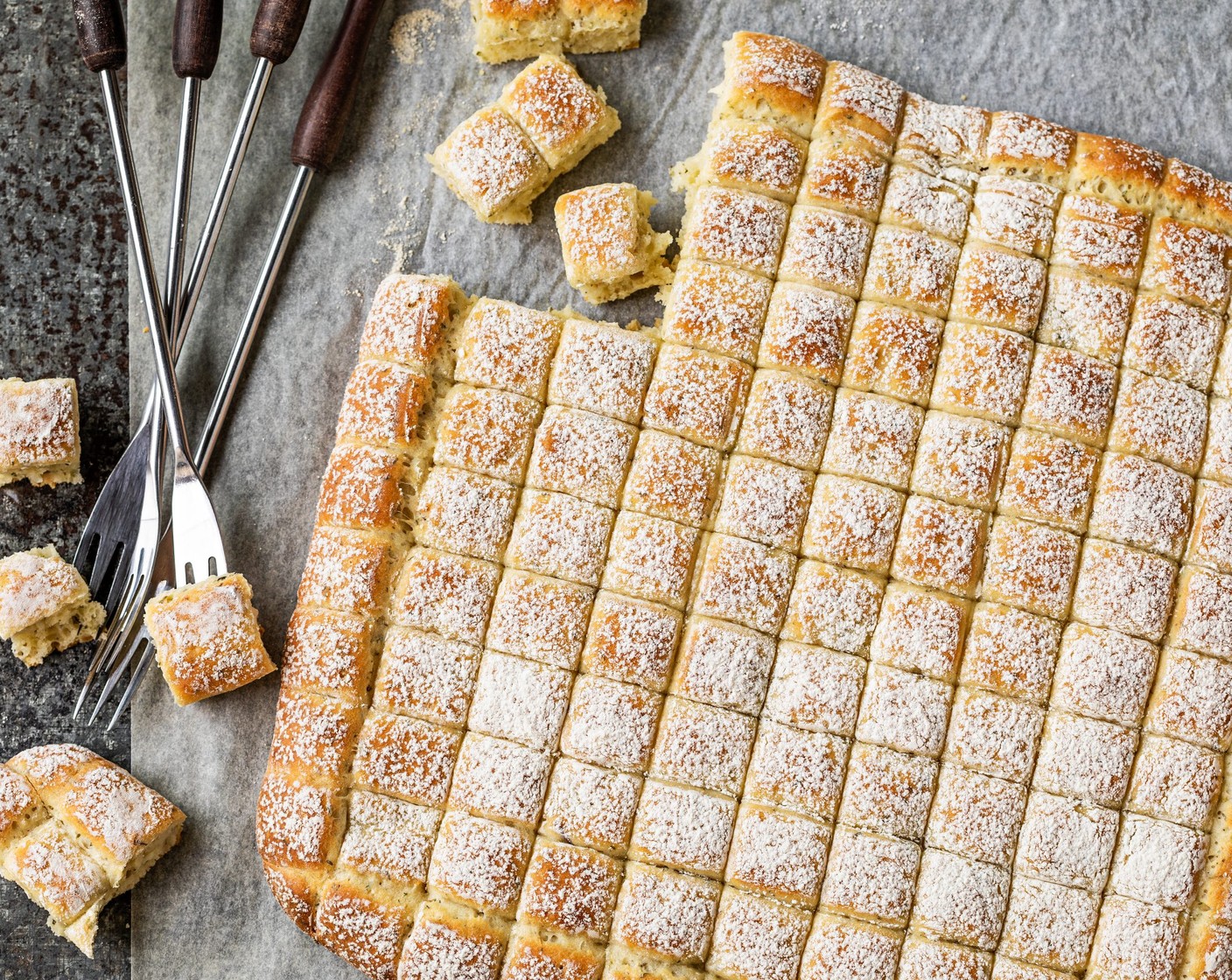 Zum Fondue selbst gemachtes Fonduebrot auftischen, je nach Gusto noch Kartoffeln dazu: Das sorgt Stückchen für Stückchen für Abwechslung beim Fondueplausch.