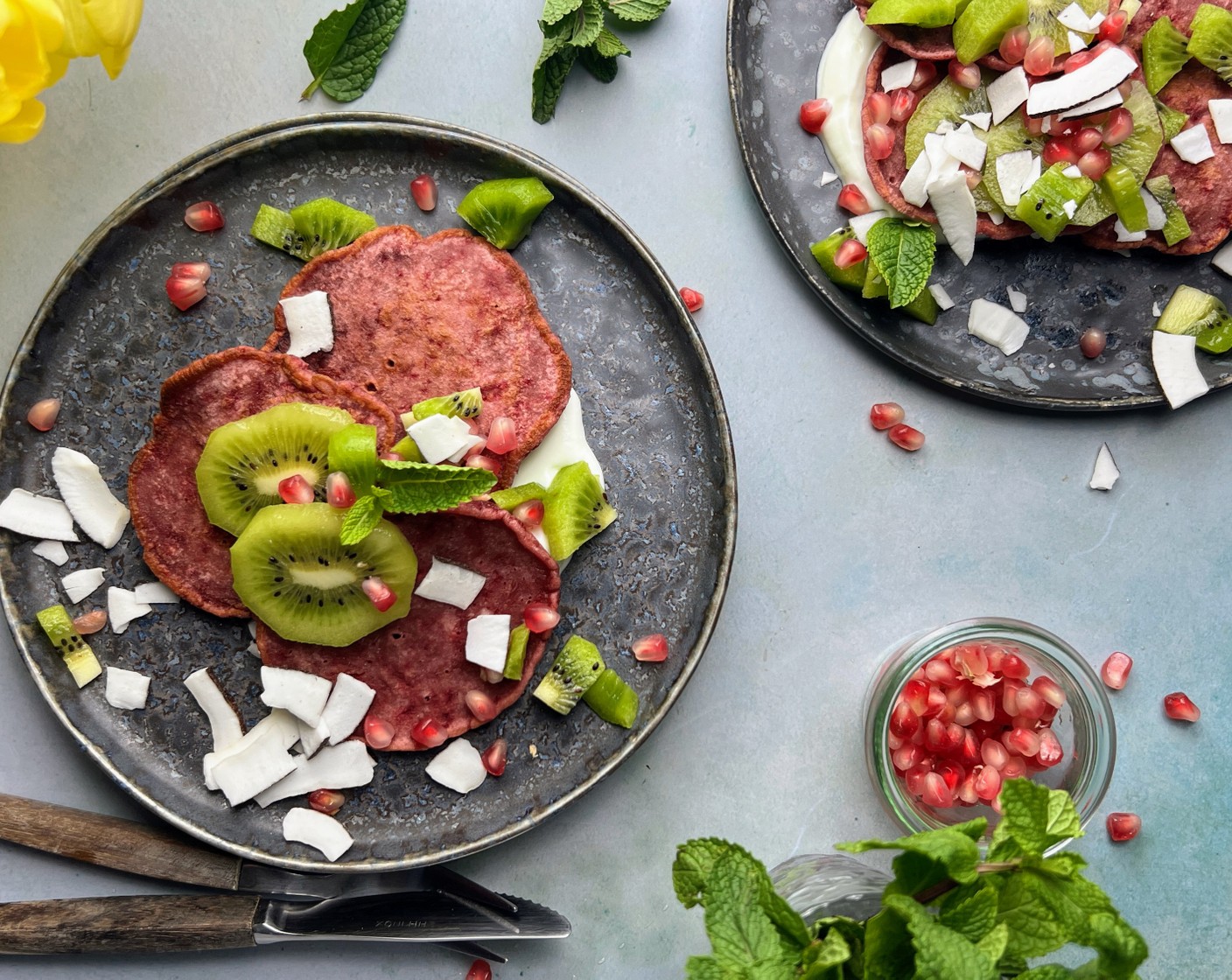 Mit diesen Pancakes bringst du ein bisschen Farbe auf deinen Frühstücksteller. Diese Red Velvet Pancakes sind nicht nur ein optisches Highlight, sondern auch ein Genuss für den Gaumen – saftig, leicht süss und mit einer dezenten fruchtigen Note.