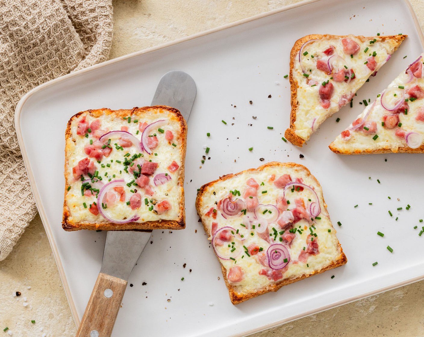 Toast-Fans aufgepasst! Dieses Rezept mit Toastbrot, oder altem Brot, wird wie ein Flammkuchen belegt und gebacken. Superschmackhaft. No Food Waste.