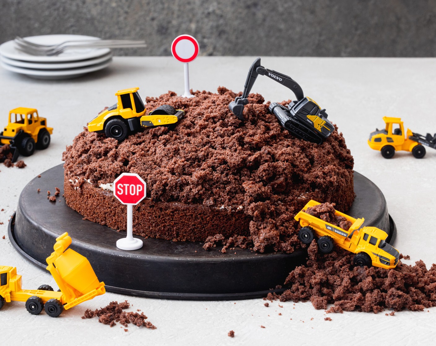 So verwandelst du einen Maulwurfkuchen in eine garantiert umjubelte Baustelle. Bei diesem Geburtstagskuchen werden nicht nur Fans von Baggern schwach.