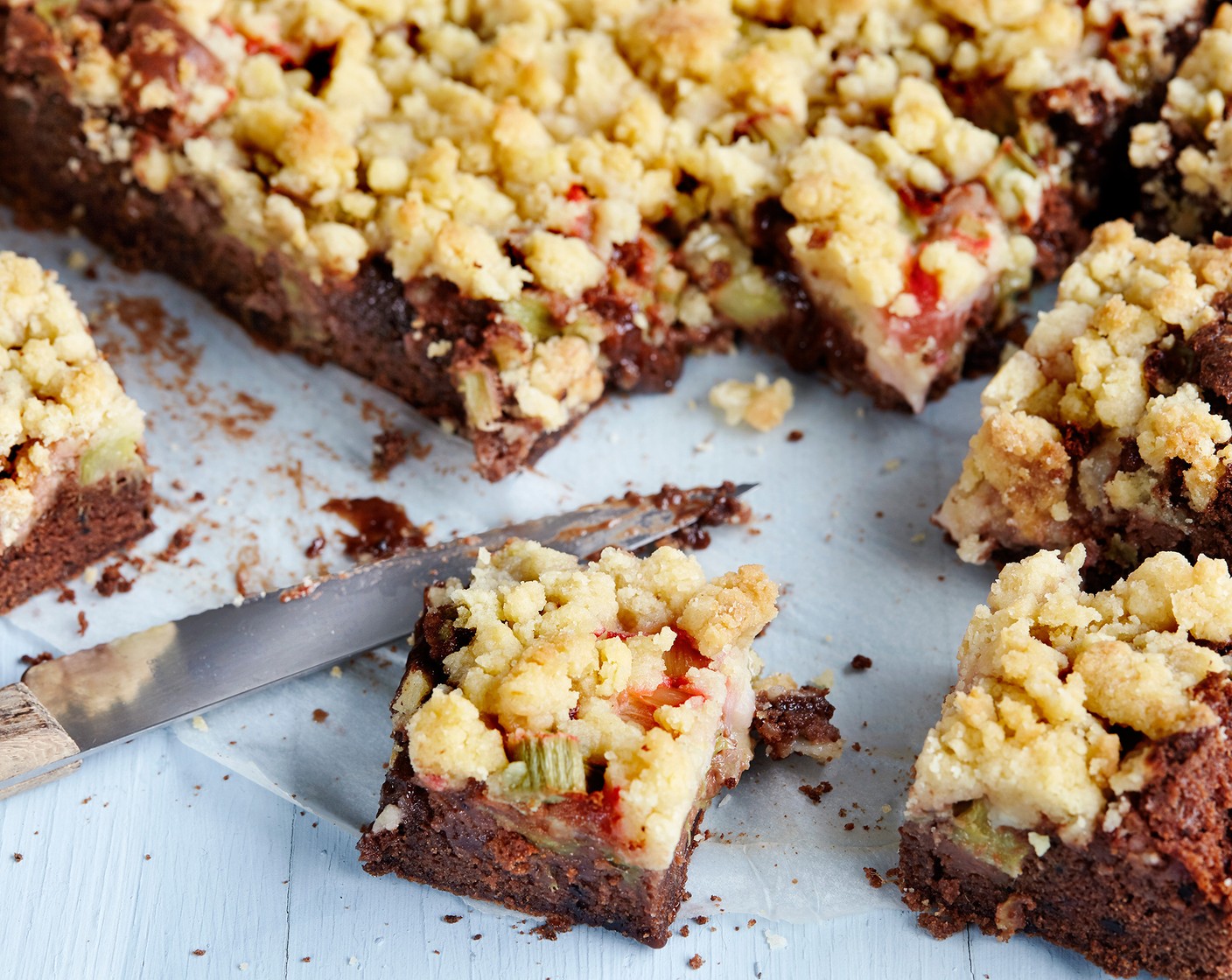 OMG, wer hatte nur diese geniale Idee, Brownies mit Rhabarber und Crumble zu kombinieren. Umwerfend schmecken diese kleinen Köstlichkeiten.