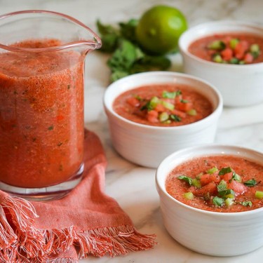 Dies ist eine etwas andere Art von Gazpacho, aber sie funktioniert herrlich! Ingwer und Chili geben ihr einen gewissen Kick.