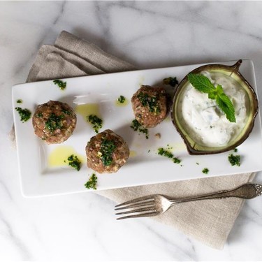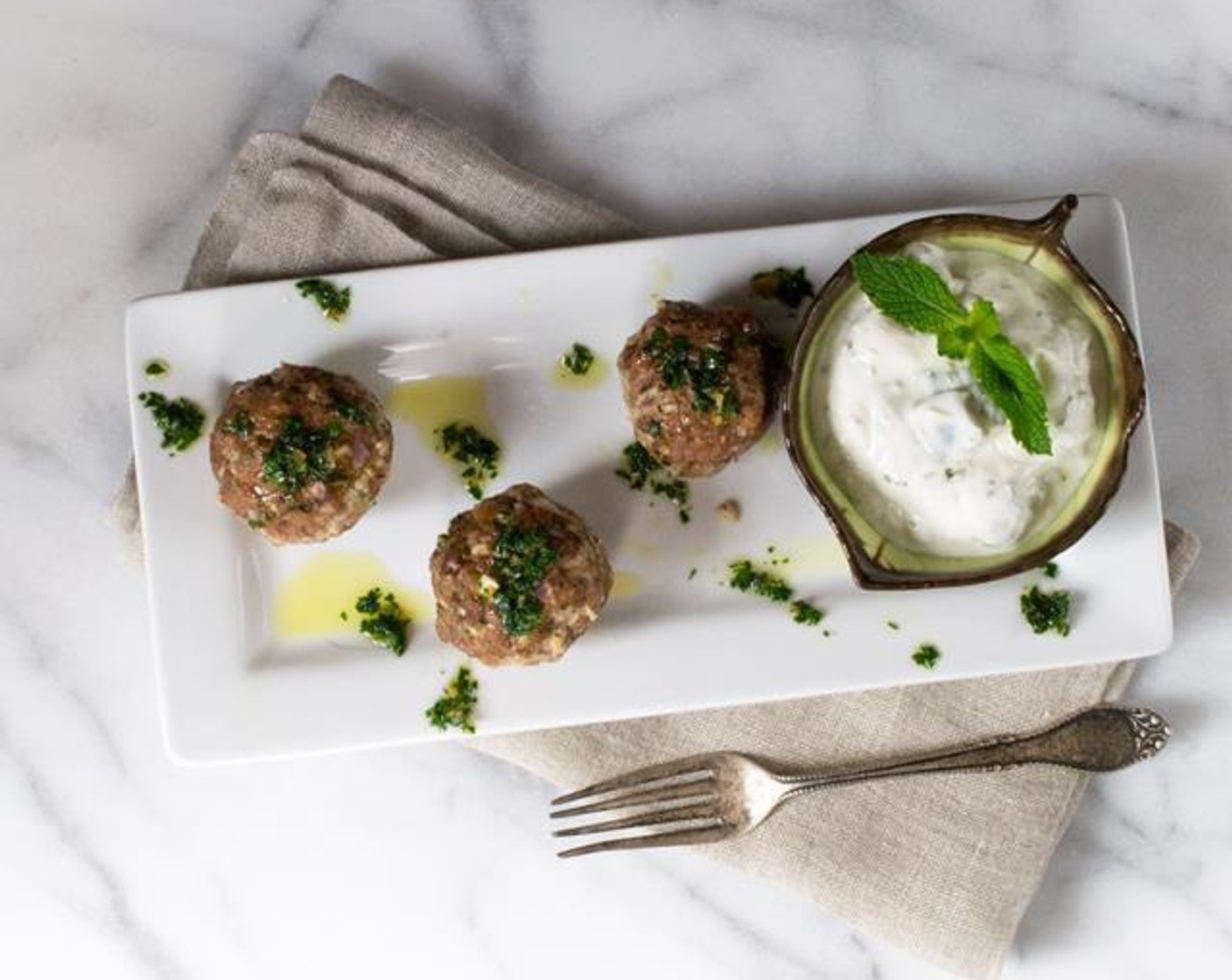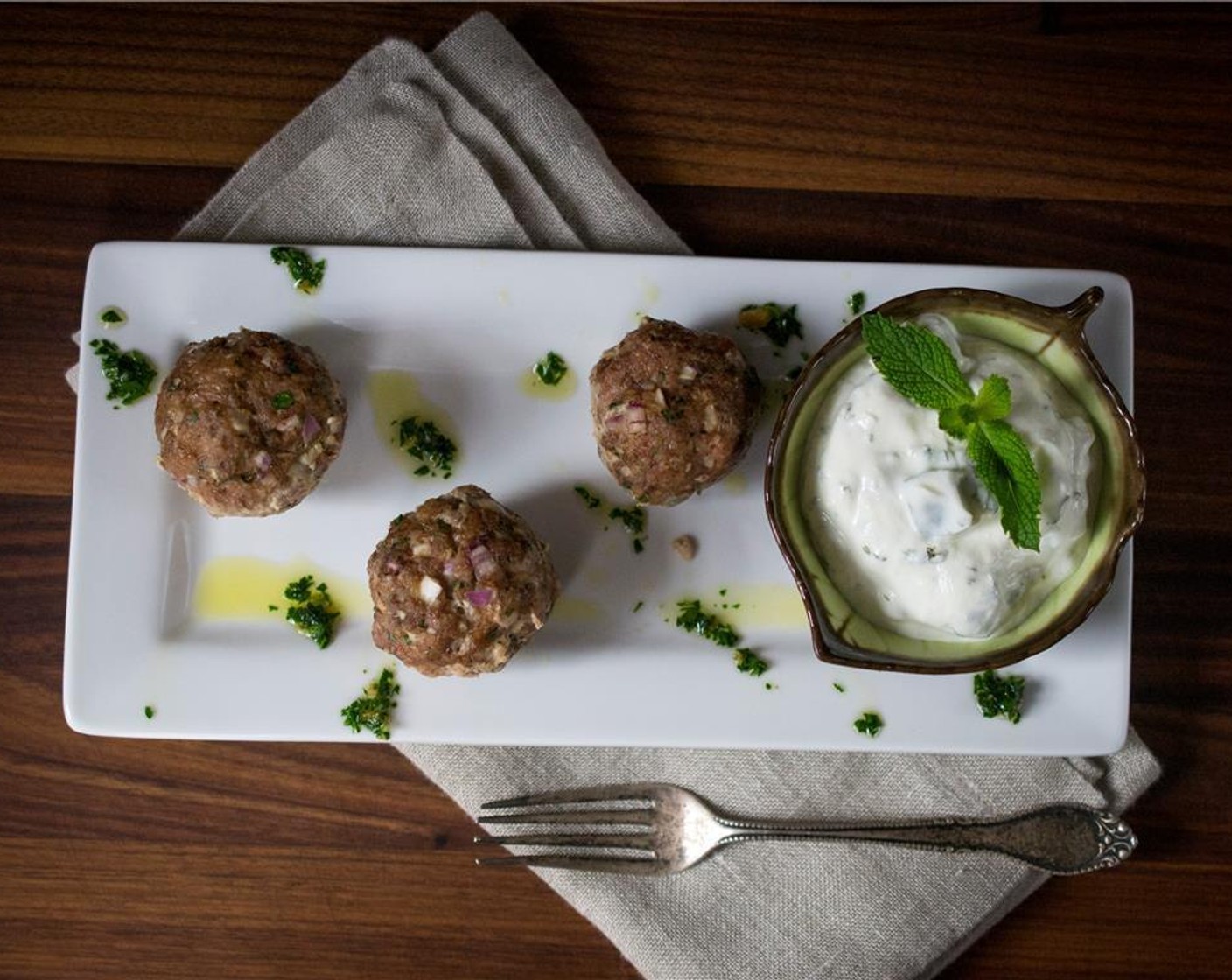 All die Aromen aus einer Tajine in Form von Fleischbällchen, mit dem Kick von hausgemachtem Harissa und einem kühlenden Klecks Tzatziki.