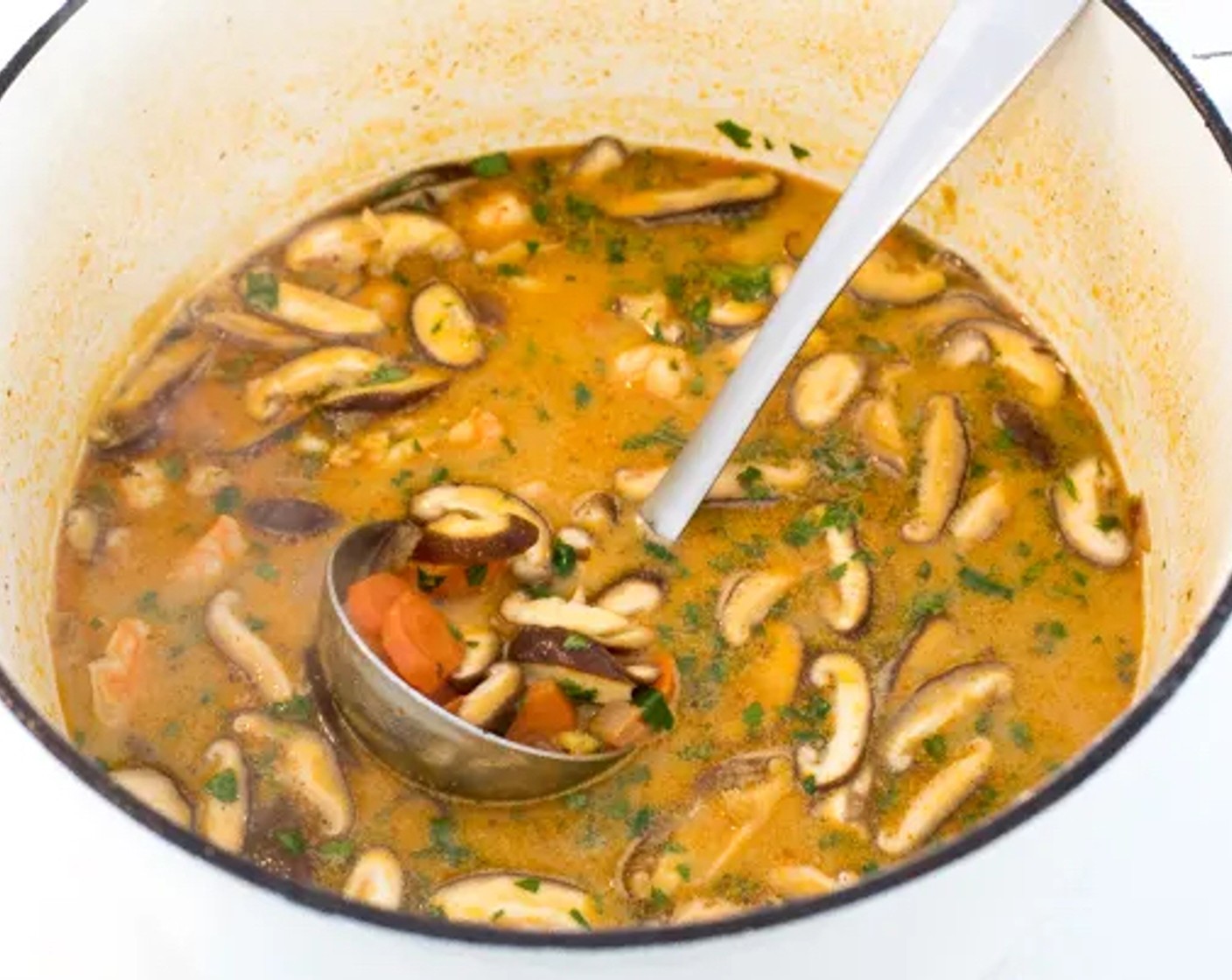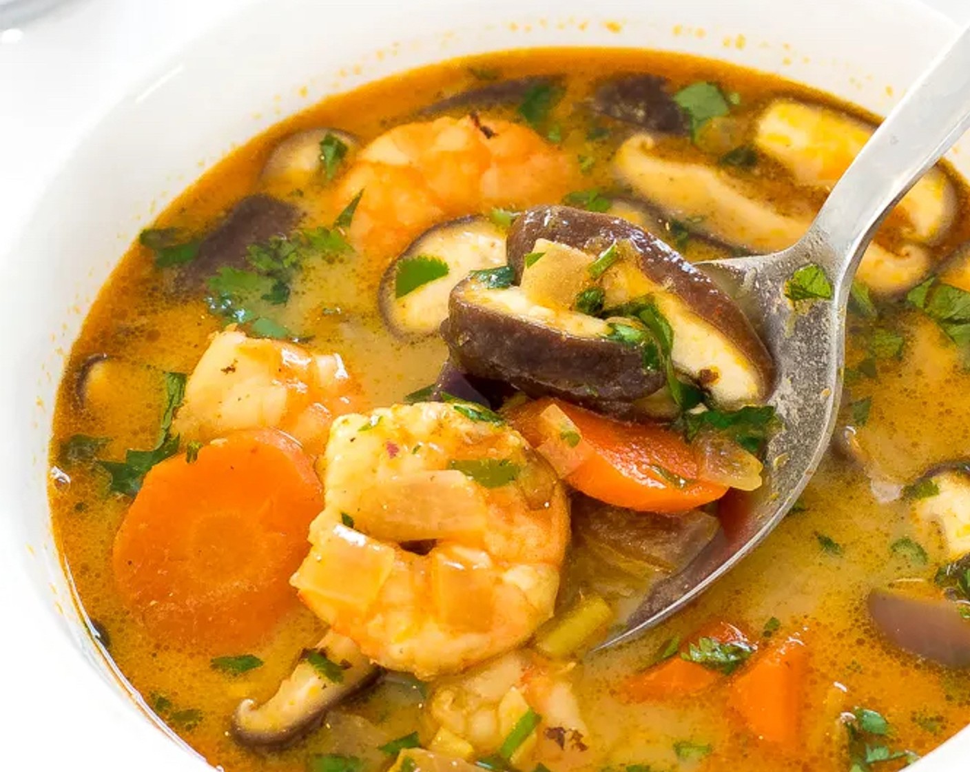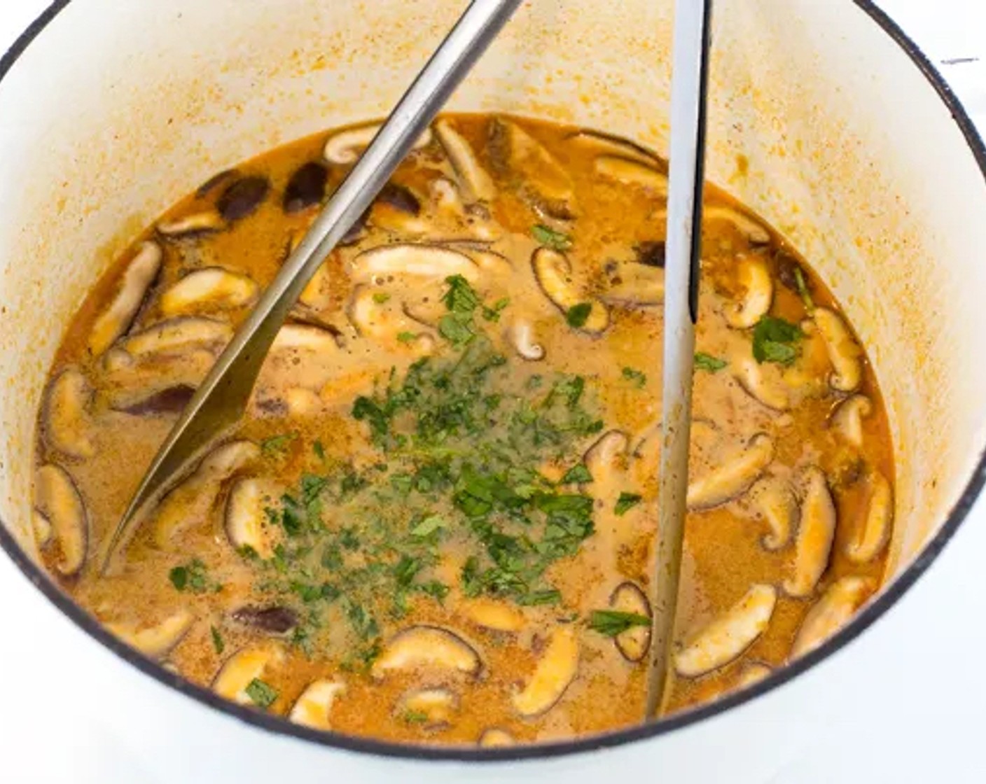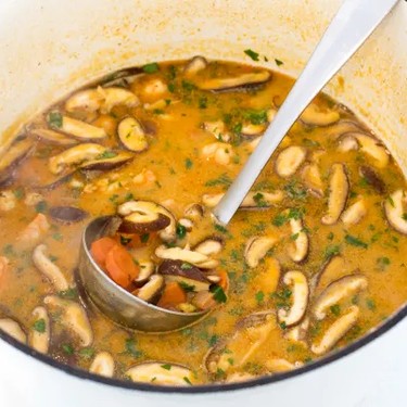 Die thailändische Kokosnusssuppe, auch bekannt als "Tom Kha", ist eine äußerst schmackhafte Suppe aus roter Currypaste, Kokosmilch, Gemüse und Garnelen. Diese thailändische Kokosnuss-Currysuppe strotzt nur so vor Geschmack! Das wird Ihre neue Lieblingssuppe! Vegetarische und vegane Optionen sind unten aufgeführt!