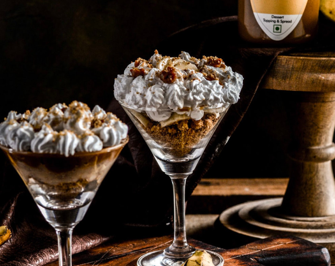 Zunächst mein erstes Rezept, ein köstliches, cremiges, köstliches Dessert aus Bananen, Haferflocken-Crumble und SPRIG Banoffee. Ein einfaches, aber köstliches Dessert, das ein ideales Menü für Ihre Partys und Picknicks darstellt. Das Bananen-Karamell-Dessert wird am besten gekühlt mit reichlich SPRIG Banoffee-Topping genossen.