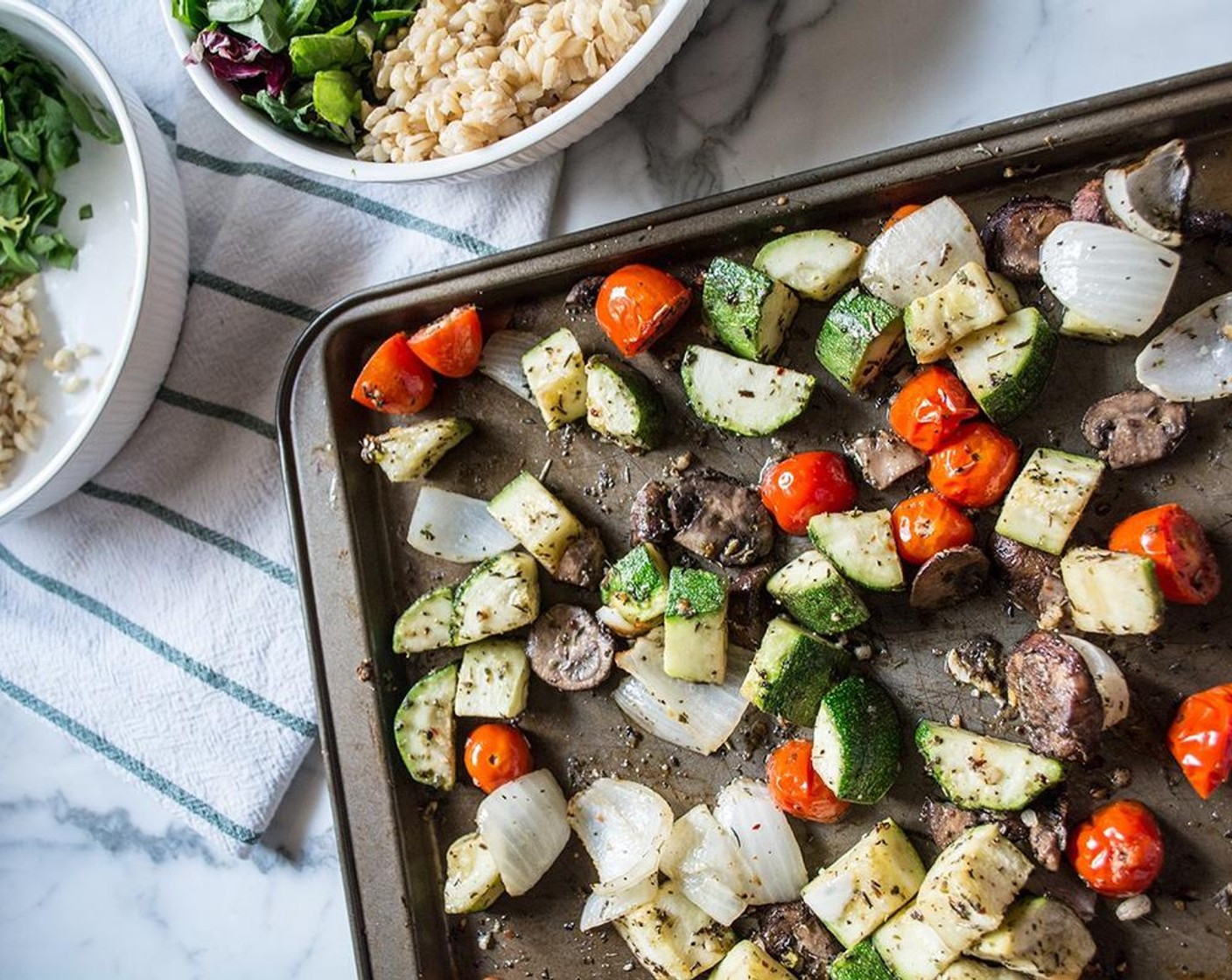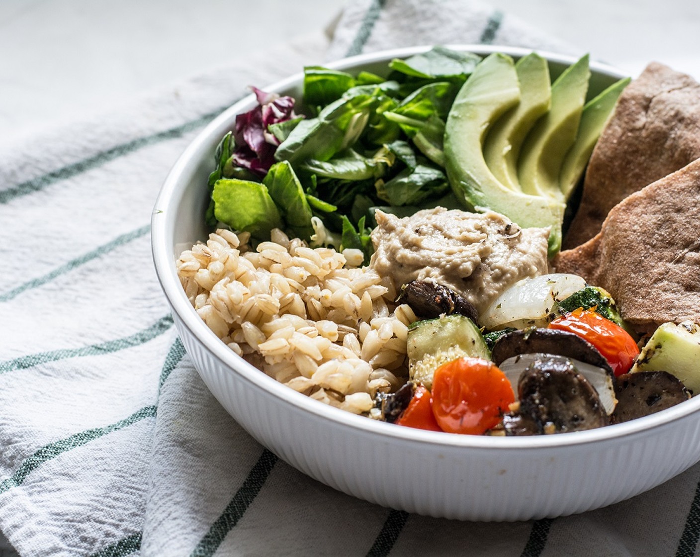 Diese geröstete Gemüse-Bowl mit Avocado und Hummus sorgt für ein herzhaftes Mittagessen, voller Geschmack und voller Ballaststoffe und Proteine!