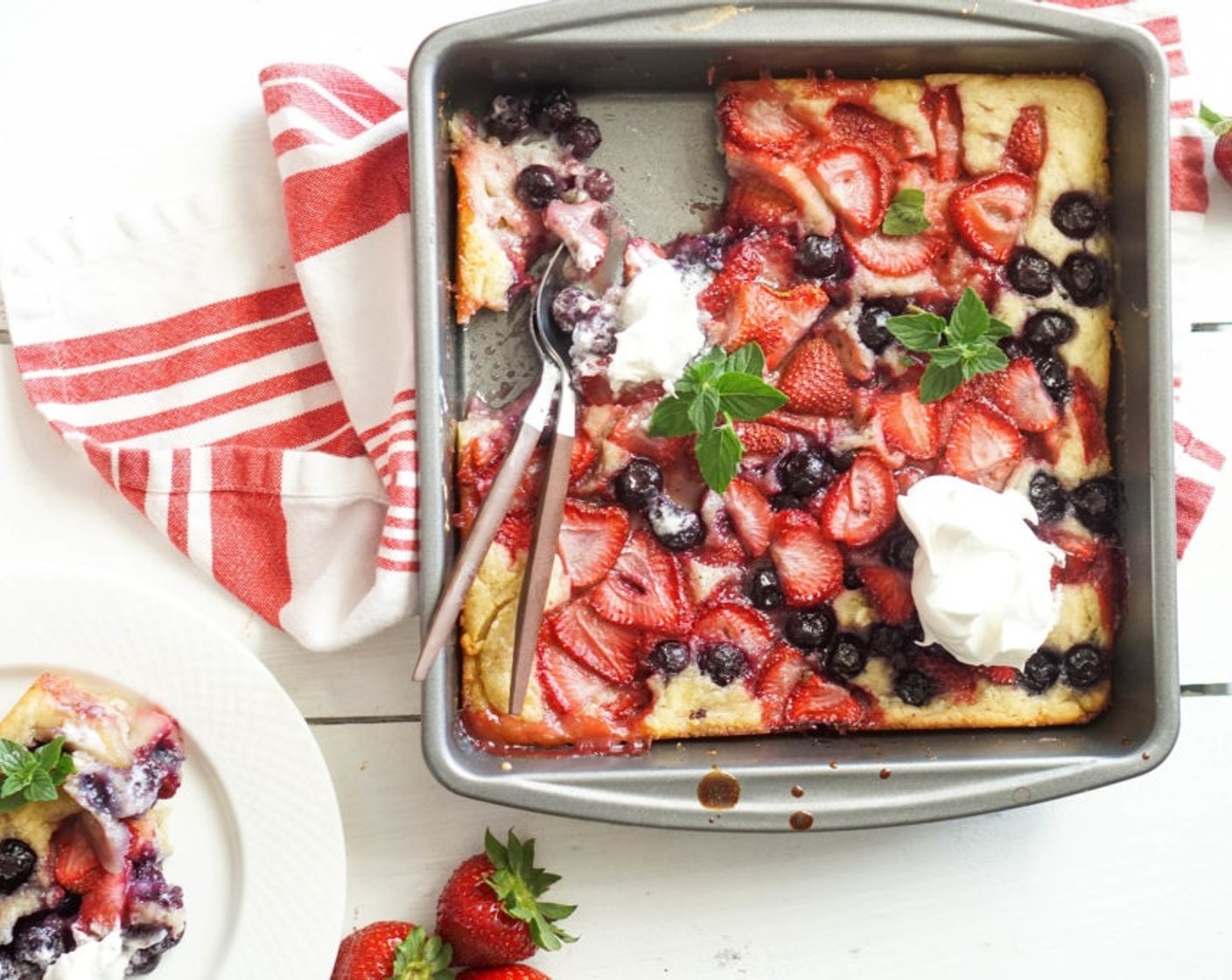Ein SUPER einfacher Beeren-Kuchen, der perfekt zu Schlagsahne oder Vanilleeis passt. Er kann mit jeder Art von Beeren oder Früchten zubereitet werden. Blaubeeren und Mais wären köstlich.