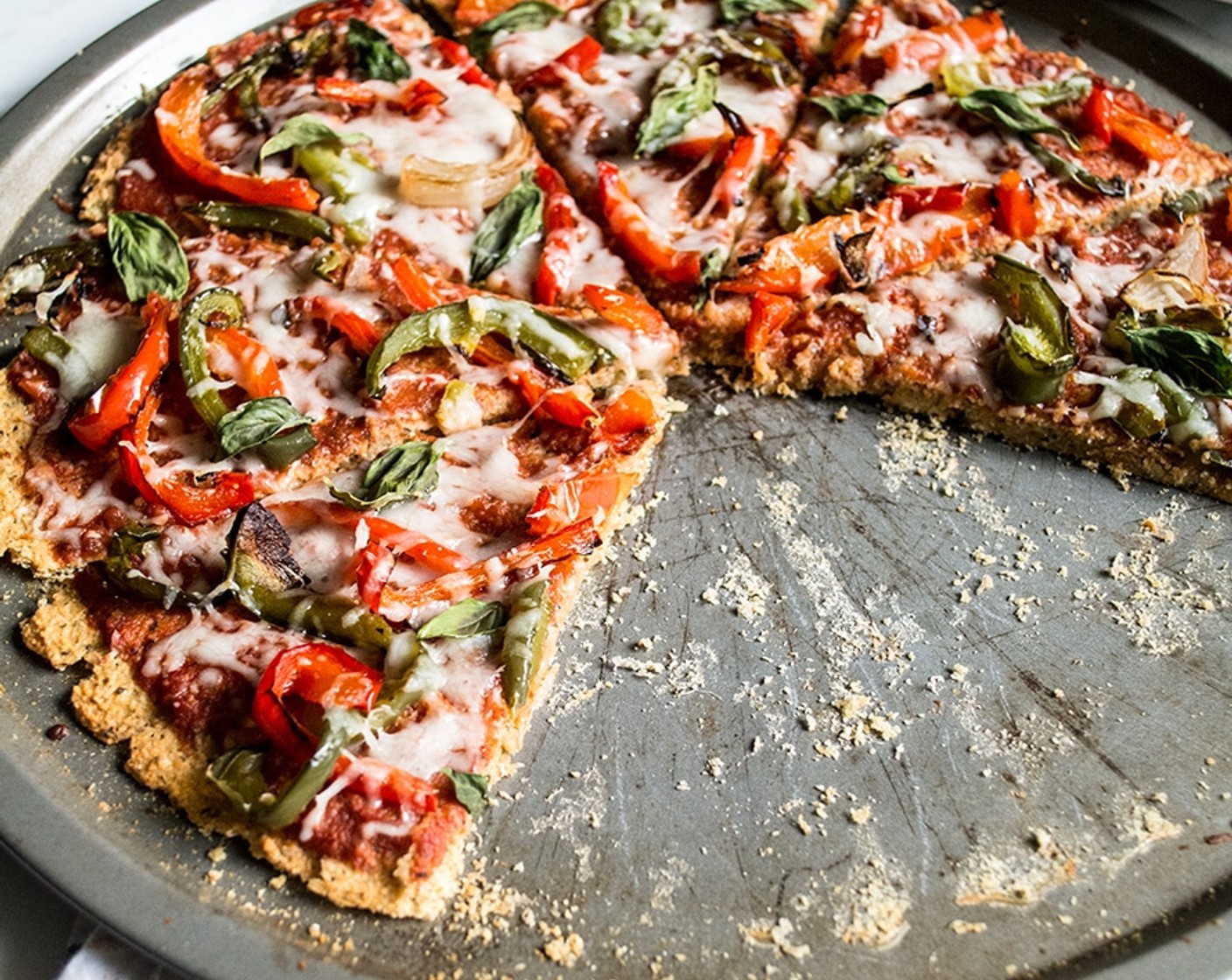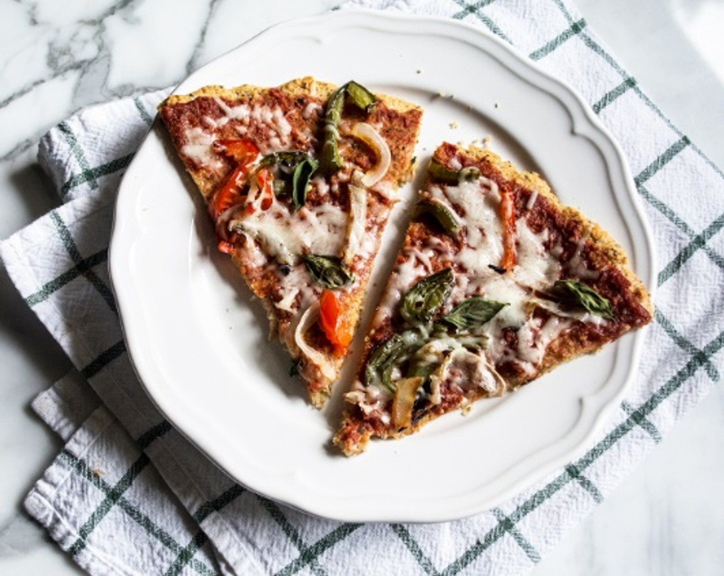 Der knusprige Linsenteig wird mit einer bunten Auswahl an geröstetem Gemüse belegt, darunter bunte Paprika und Zwiebeln, die mit aromatischen Gewürzen verfeinert sind. Abgerundet wird das Ganze mit einer Schicht cremigem Mozzarella und frischem Basilikum. Perfekt für alle, die eine schmackhafte Alternative zur traditionellen Pizza suchen!