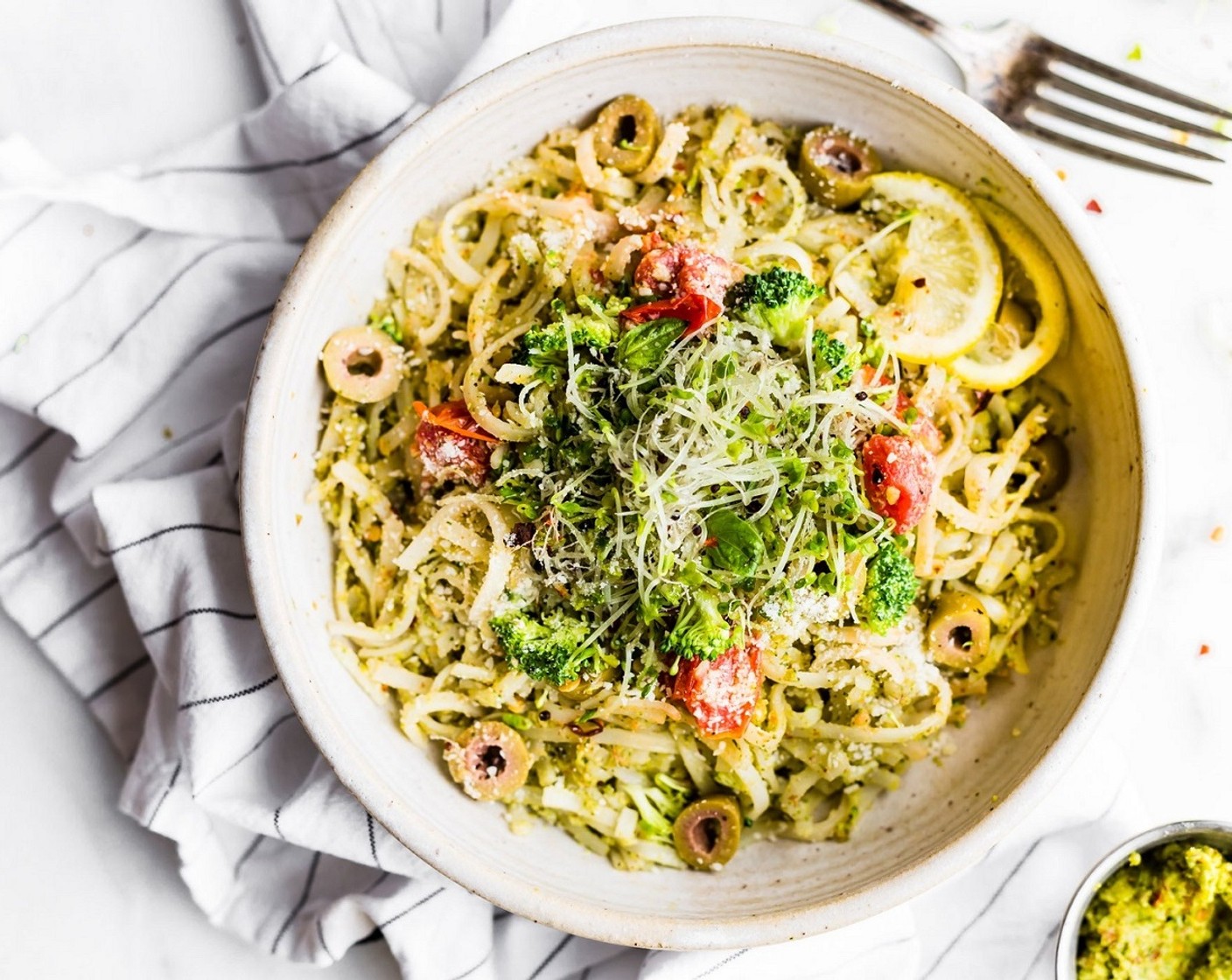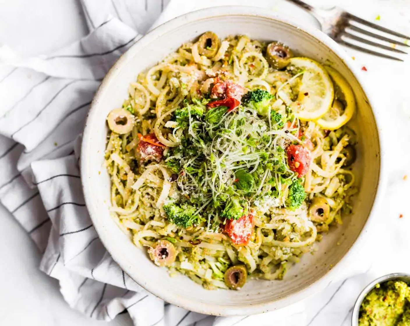 Schnell, gesund und fleischlos - ein perfektes Abendess für unter die Woche, die Pasta mit selbstgemachtem Brokkoli-Rucola-Pesto.