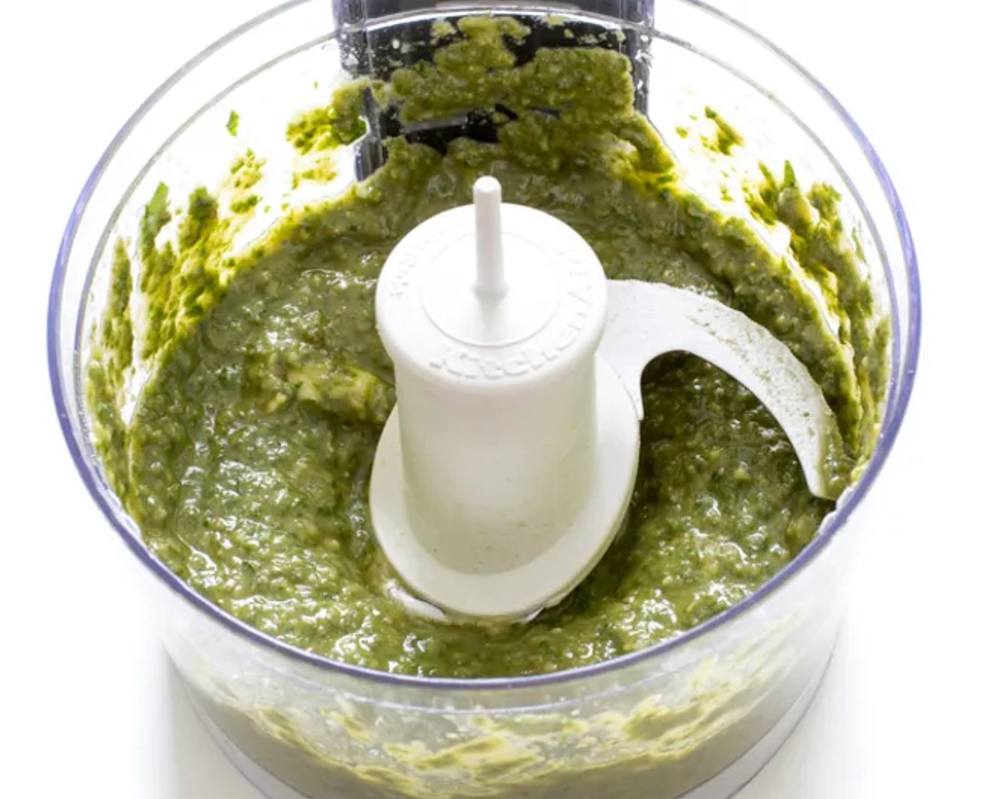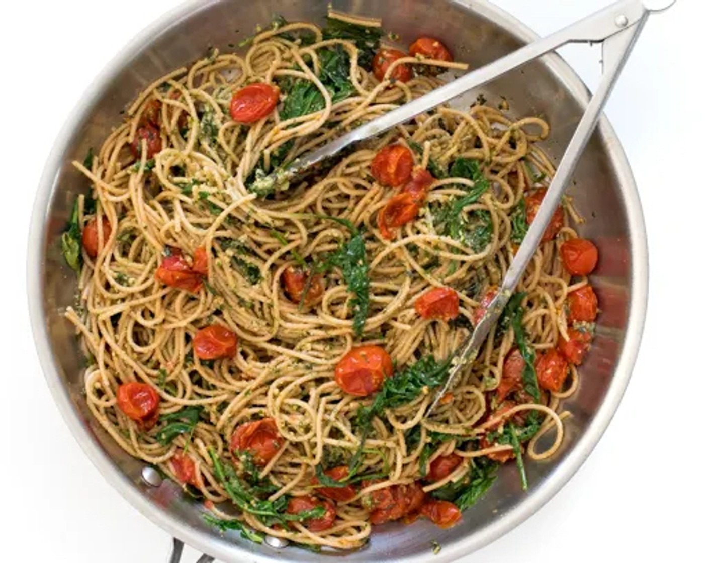 Diese supereinfache Pasta passt perfekt in eine arbeitsreiche Woche und ist eine unterhaltsame und budgetfreundliche Variante des traditionellen Pestos. Etwas mehr Pesto hält sich einige Tage im Kühlschrank und schmeckt herrlich auf Sandwiches für das Mittagessen am nächsten Tag.