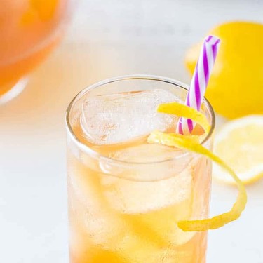 Dieser helle, erfrischende und zitronige Eistee lässt sich ganz einfach selbst zubereiten. Zitronenscheiben bringen diesen herrlich frischen Geschmack.