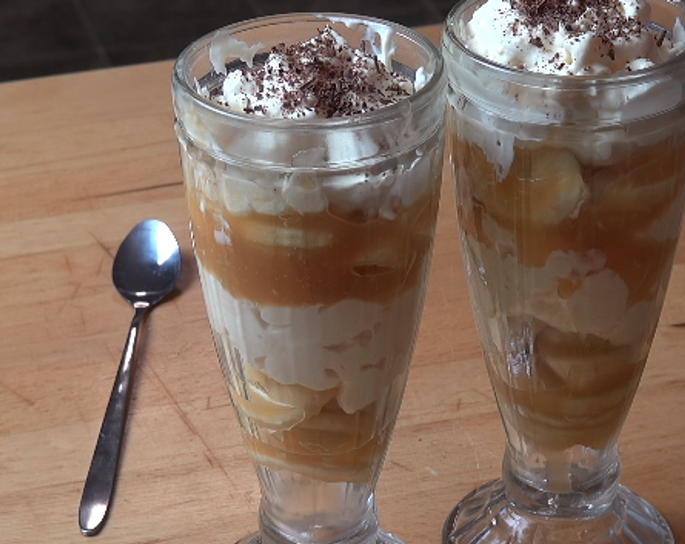 "Banoffee" ist ein sensationelles Dessert, das in nur 10 Minuten zubereitet werden kann! Garniert mit etwas geriebener Zartbitterschokolade eignet sich diese schnelle Versuchung hervorragend für Last-Minute-Dinner-Partys oder wann immer man sofort etwas Süsses braucht. Los gehts!