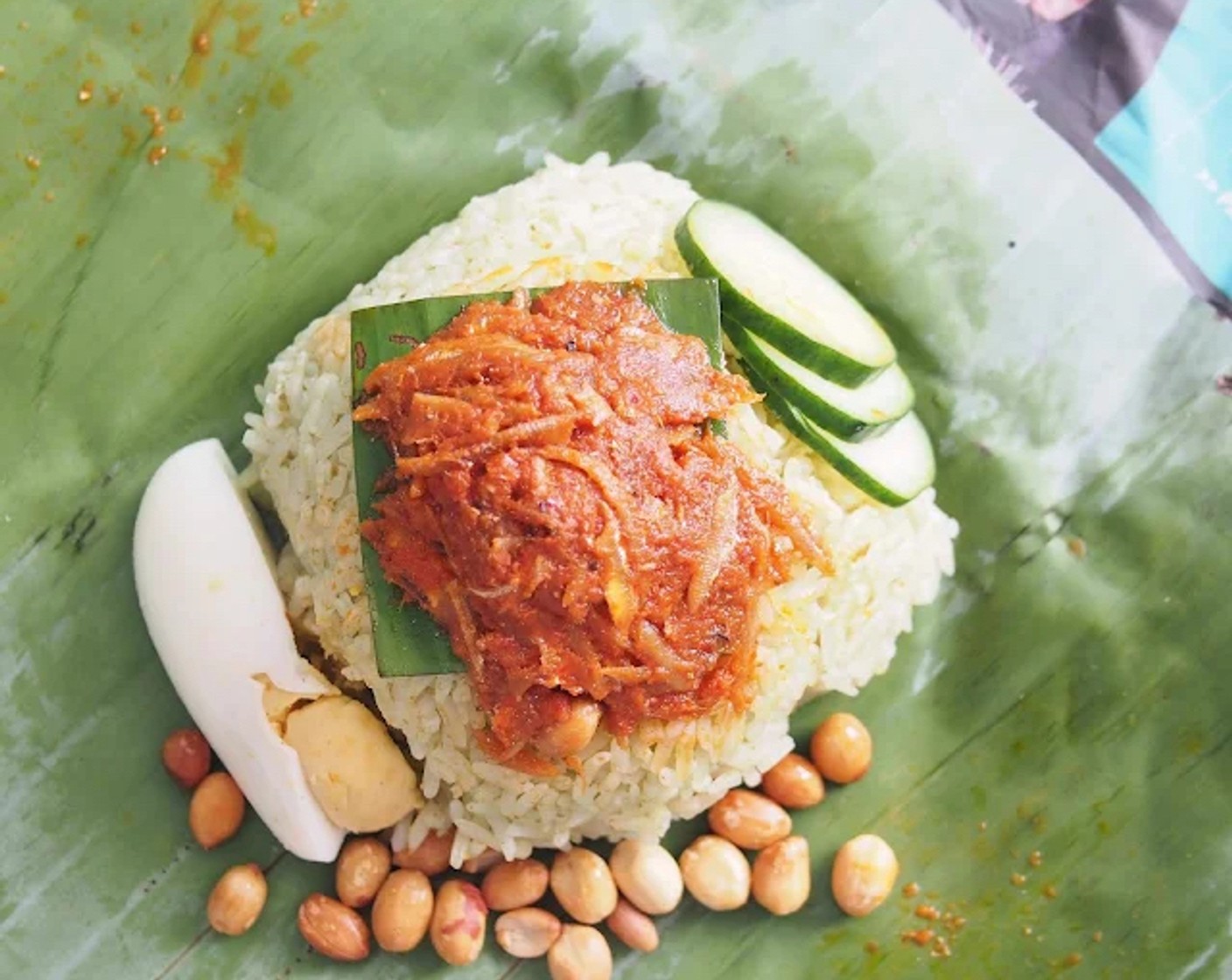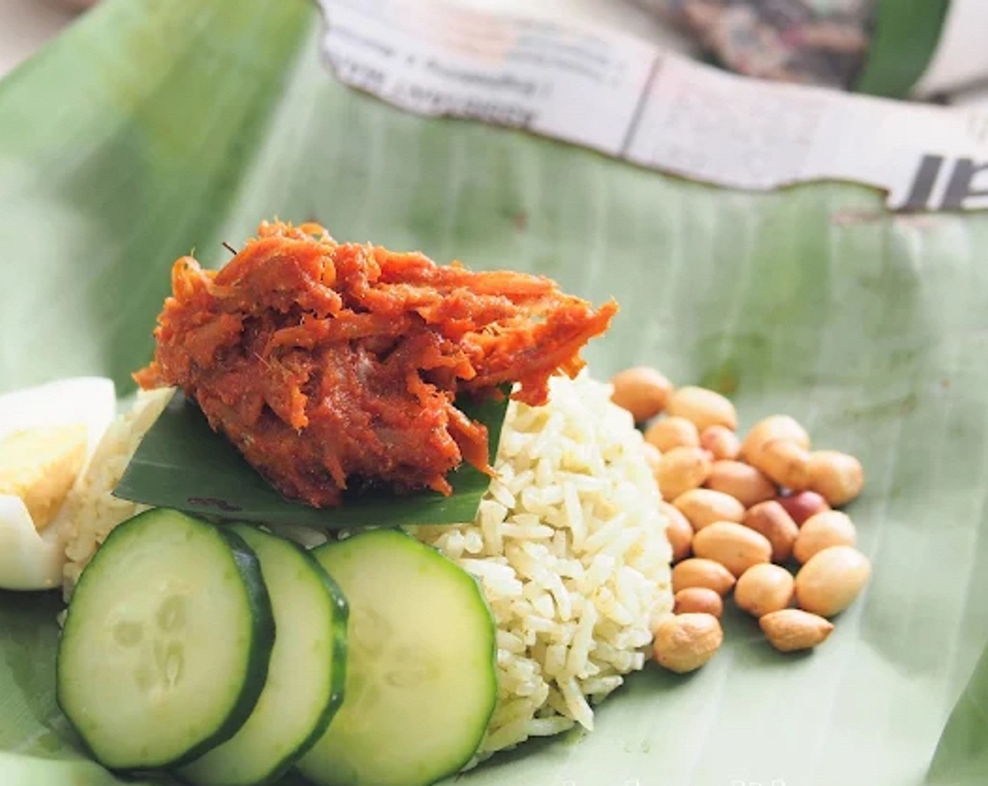Nasi Lemak Bungkus ist ein malaysischer Frühstücks-Klassiker. Das in Bananenblättern verpackte Reisgericht ist herzhaft, aromatisch und unglaublich köstlich. Die scharfe Chili-Sardellenpaste (Sambal Ikan Bili) in Kombination mit dem süsslichem Kokosnuss-Reis und den knackigen Erdnüssen geben dem Gericht das gewisse Etwas, sodass man davon nicht genug bekommt.