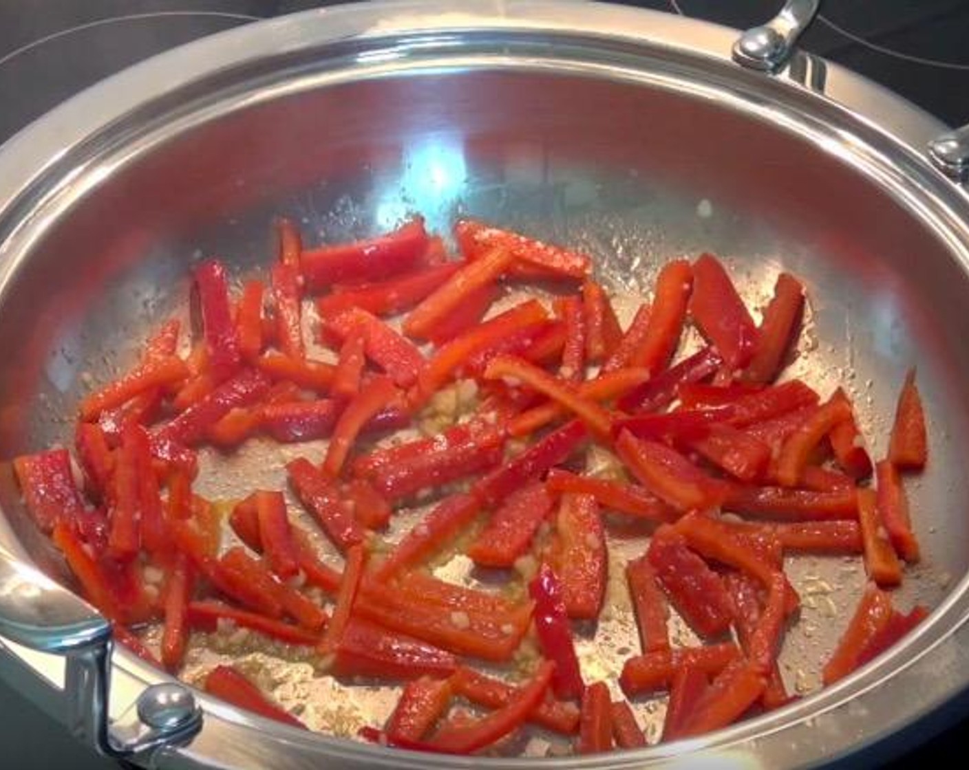 Peperoni, rot, klein, entkernt, dünn geschnitten