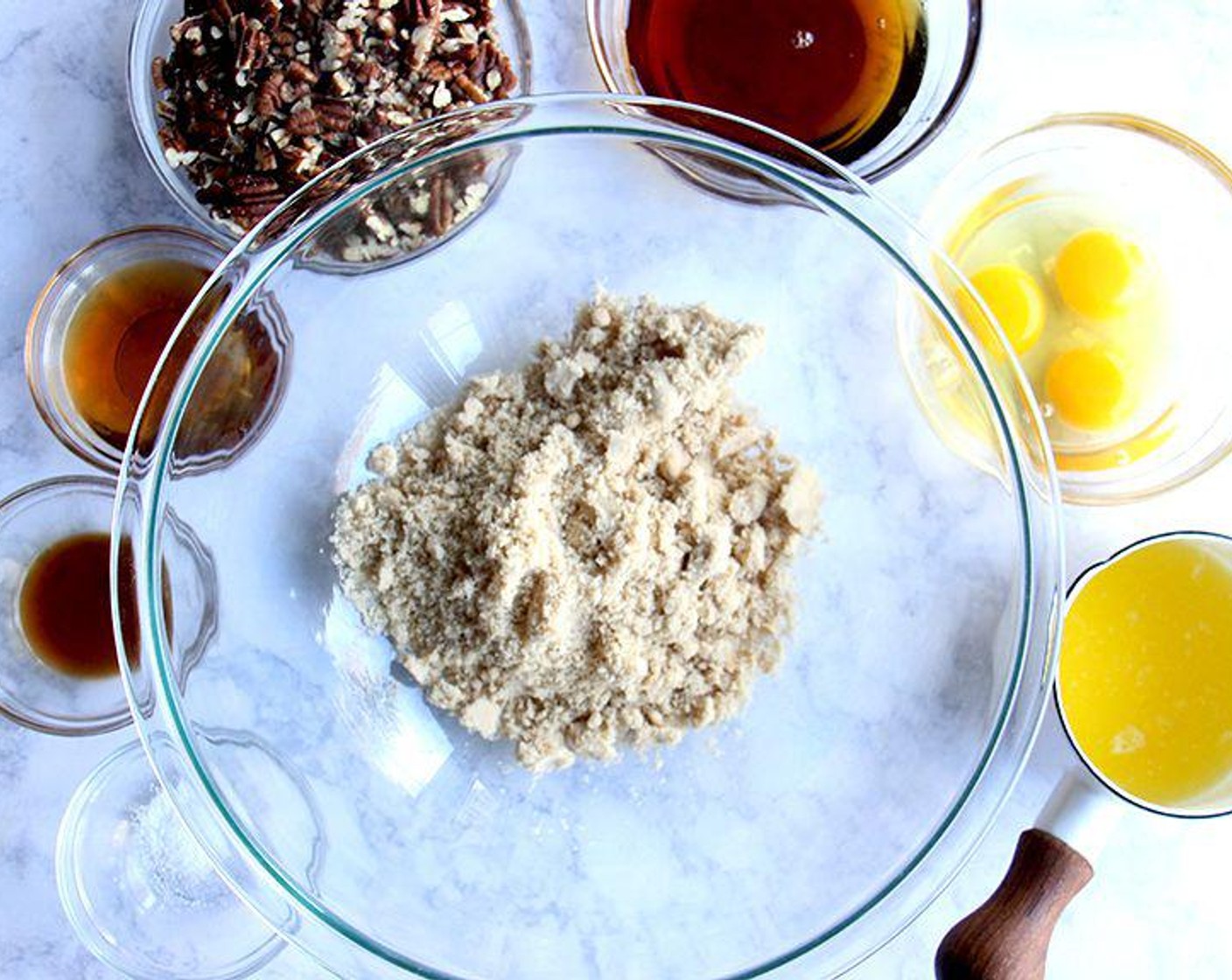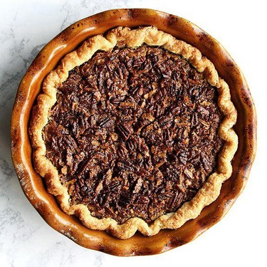 Um die Füllung zu machen, in einer großen Schüssel den Brauner Zucker (220 g), Ahornsirup (120 ml), Eier, L (3), Butter (4 Esslöffel), Bourbon (3 Esslöffel), Vanille-Extrakt (1 TL), und Salz (1/4 TL). Rühren Sie die gerösteten Pekannüsse, geröstet (250 g) ein.