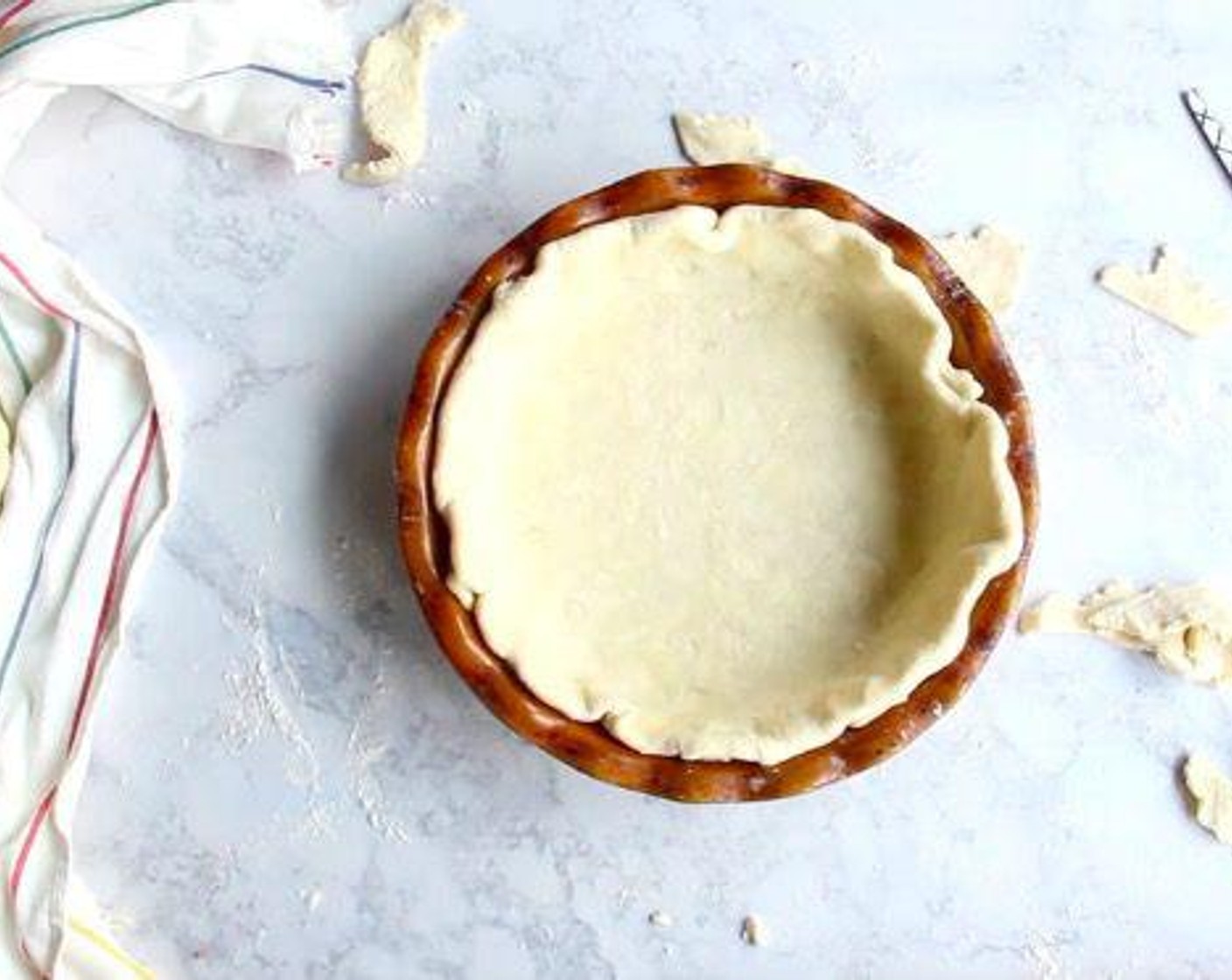 Wenn Sie sofort einen backen, bemehlen Sie eine Arbeitsfläche leicht, rollen Sie ihn zu einem Kreis aus, der ein oder zwei Zoll größer ist als Ihre Tortenplatte, legen Sie ihn auf die Tortenplatte, schneiden Sie den überhängenden Teig ab und kneten Sie den Teig wie gewünscht. Kühlen Sie im Kühlschrank, während Sie die Füllung vorbereiten.