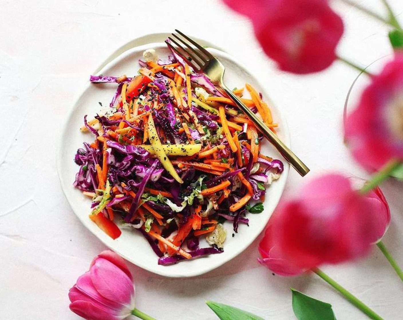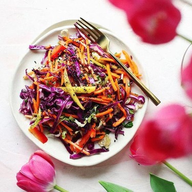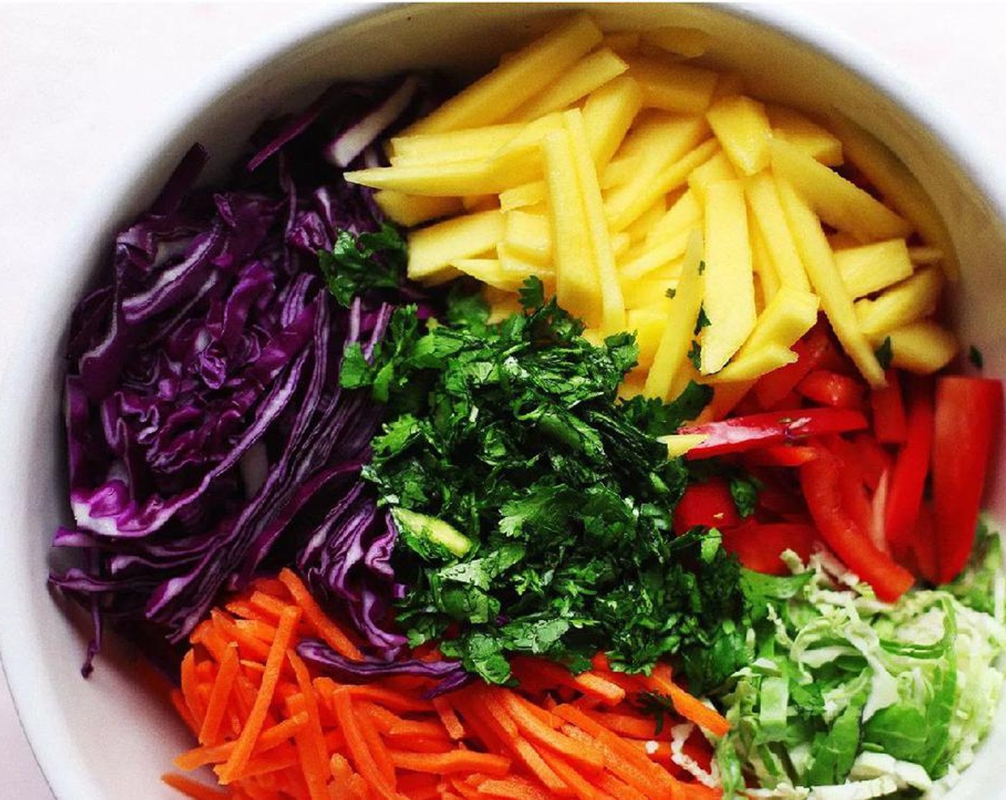 Dieser Mango-Tropical-Regenbogen-Krautsalat ist frisch und perfekt für kleine Grillparties und Famililenfeste gleichermassen. Er enthält alle guten Zutaten, die man braucht.