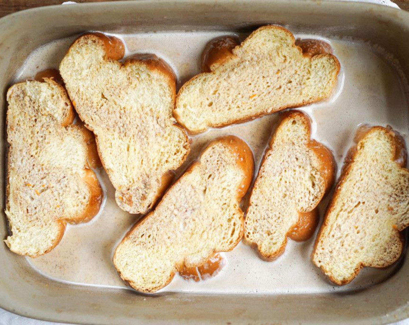 Diese Version von French Toast hebt das Frühstück auf ein ganz neues Level. Weiches, leicht süsses Challah-Brot wird in eine samtige Puddingcreme mit feinem Orangen- und Mandelaroma getaucht, goldbraun gebraten und anschliessend mit einer fluffigen Schlagsahne veredelt, die mit Orangenmarmelade verfeinert ist. Das Geheimnis? Eine selbstgemachte Crème, die jedem Bissen luxuriöse Fülle verleiht. Perfekt für Brunch, besondere Anlässe – oder einfach, wenn du dir etwas richtig Gutes gönnen willst.