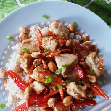 Diese thailändische Hähnchen-Erdnuss-Pfanne mit der perfekten Sauce ist eine schnelle, einfache Mahlzeit für jeden Tag!