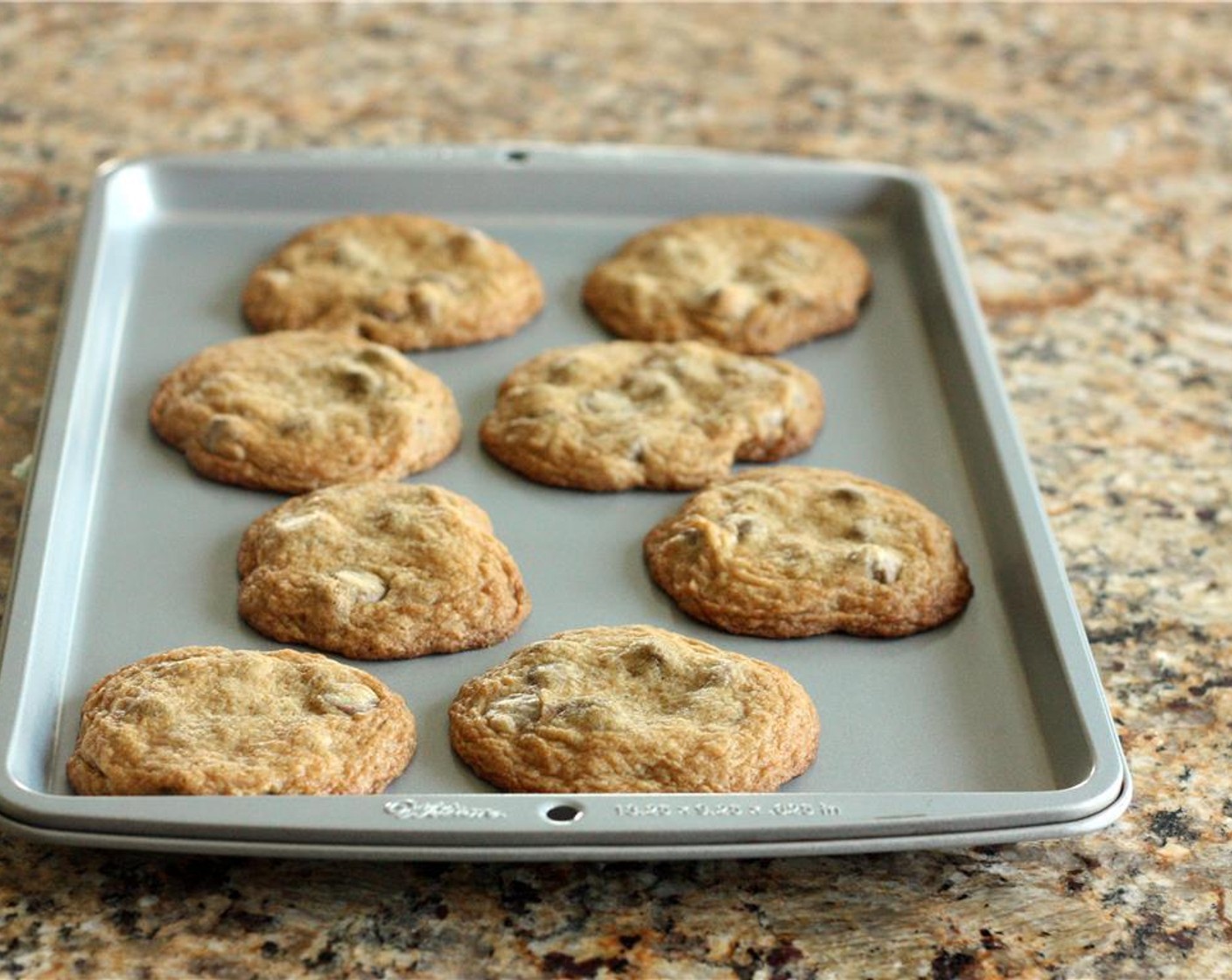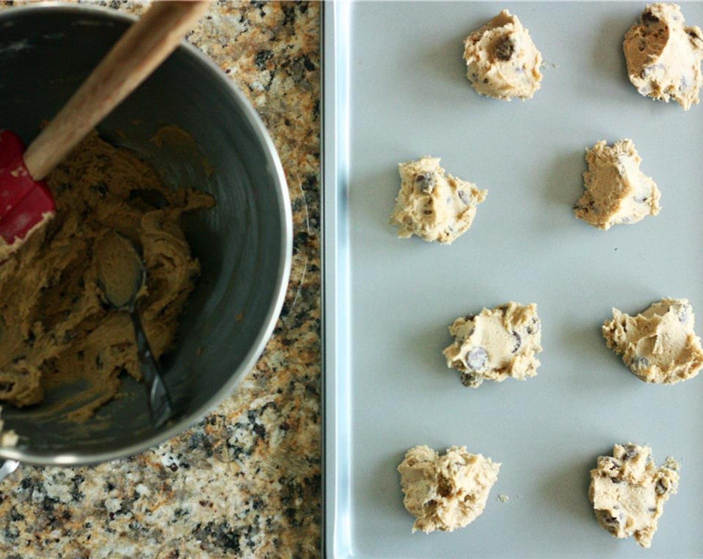 Für diese Chocolate Chip Cookies benötigt man lediglich einfache Zutaten, die man wahrscheinlich bereits in der Küche vorrätig hat, besonders wenn man gerne backt.