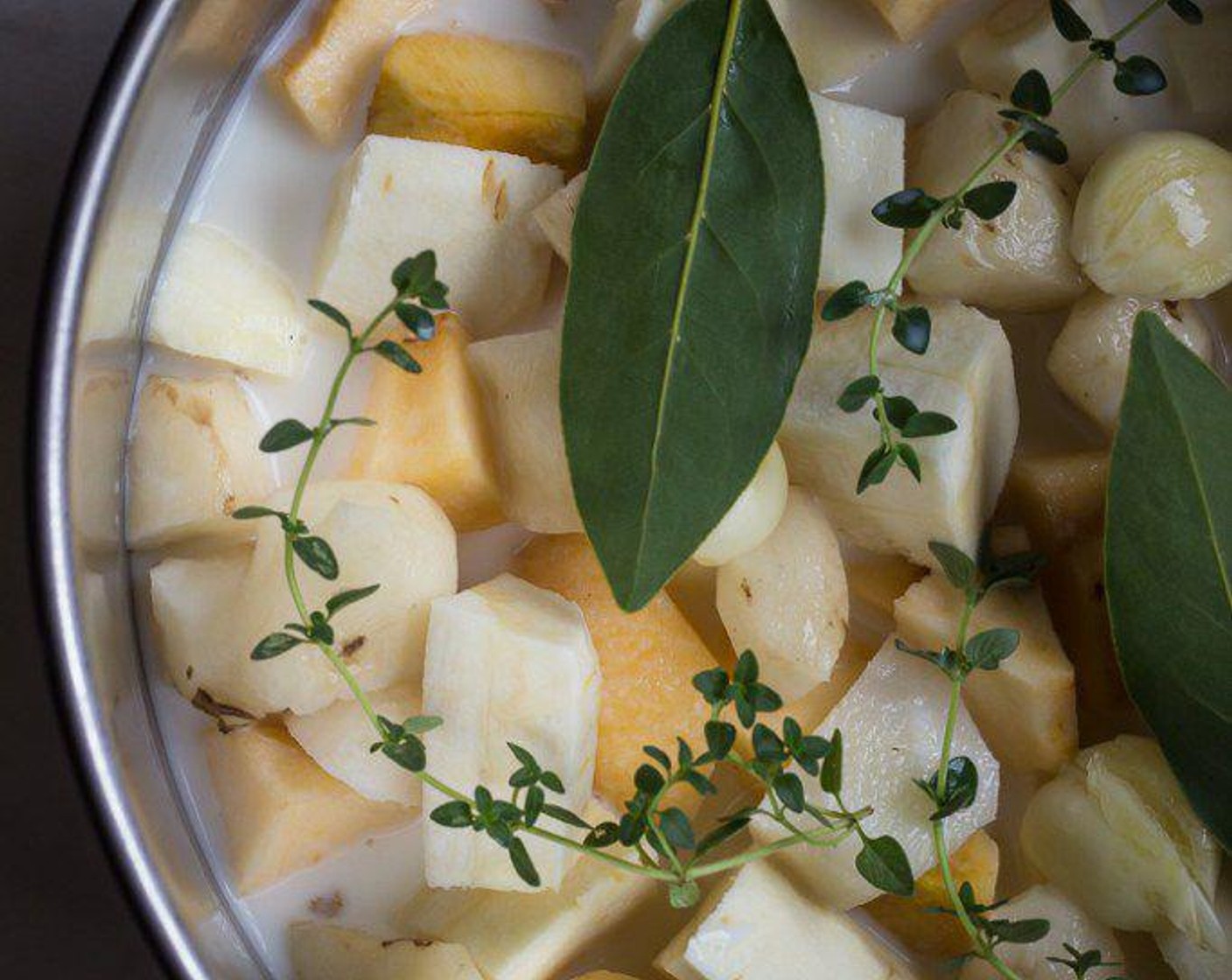 Dieses Pastinaken-Püree mit Äpfeln und Topinambur ist eine köstliche Beilage zu unserem herbstlich inspirierten Gericht und eine einzigartige Alternative zu Kartoffelpüree.