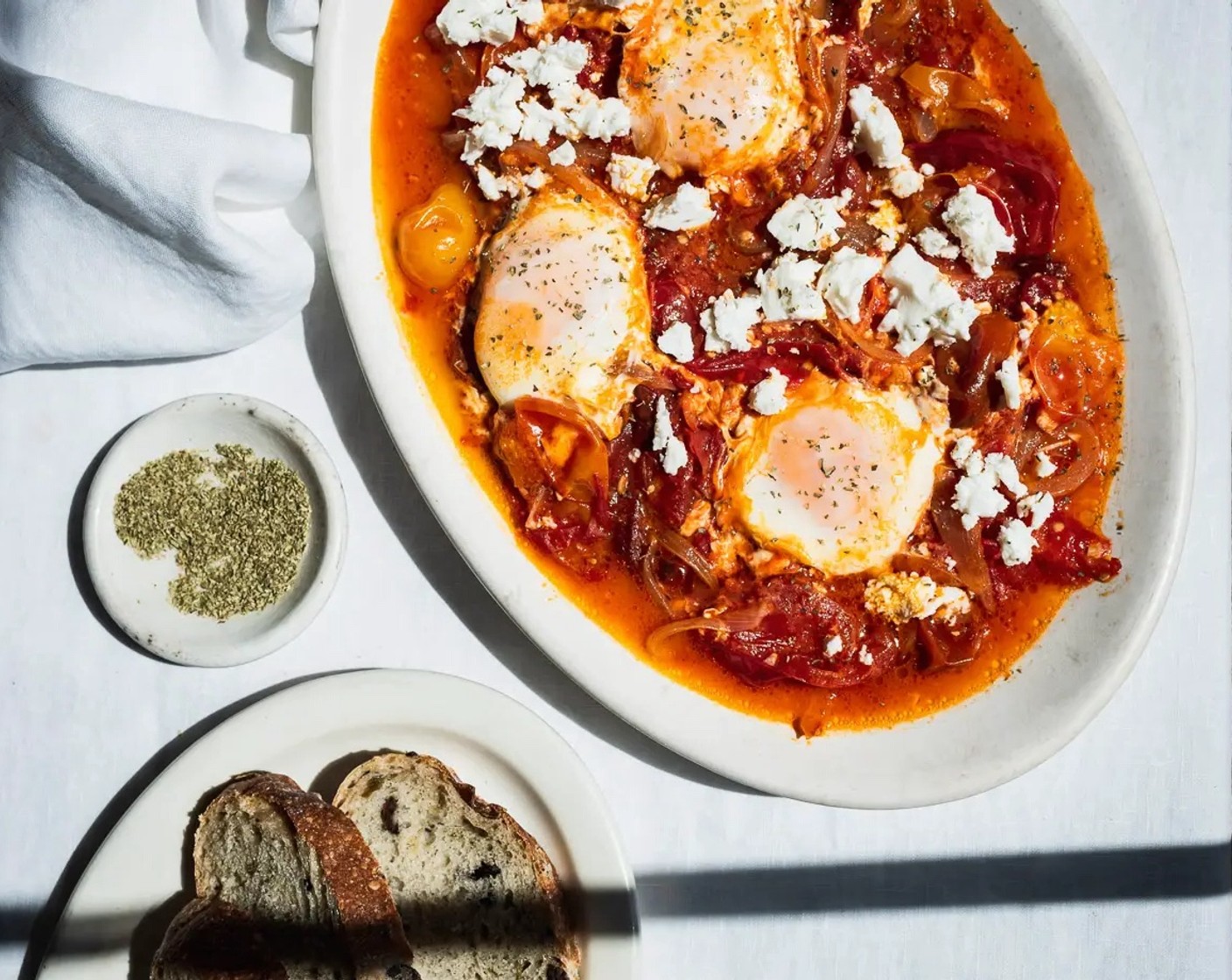 In der ungezwungenen Atmosphäre der griechischen Küche offenbart sich mit Avga Me Domates eine wohlschmeckende Fusion von Eiern und würziger Tomatensauce. Dieses traditionelle Gericht entführt den Gaumen auf eine kulinarische Reise voller mediterraner Aromen und betörender Gewürze. Die sanft pochierten Eier, umhüllt von einer reichhaltigen Tomatensauce und verfeinert mit frischem Basilikum, bieten einen Gaumenschmaus, der sowohl für ein gemütliches Frühstück als auch ein herzhaftes Abendessen geeignet ist. Gönnen Sie sich das Vergnügen eines echten griechischen Klassikers – einfach zuzubereiten und unglaublich köstlich!