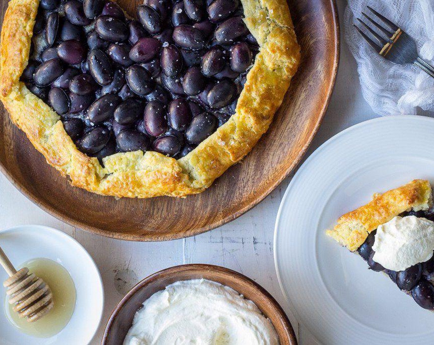 Eingehüllt in einen zarten, goldbraun gebackenen Tortenboden und gekrönt mit einem Klecks frischer Schlagsahne aus griechischem Joghurt ist diese Halva-Trauben-Galette eine geschmackliche Offenbarung. Ein Highlight für jeden Anlass, das mit seiner einzigartigen Kombination aus süssen Trauben und aromatischer Halva begeistert. Perfekt für die Feiertage oder als besonderes Dessert.