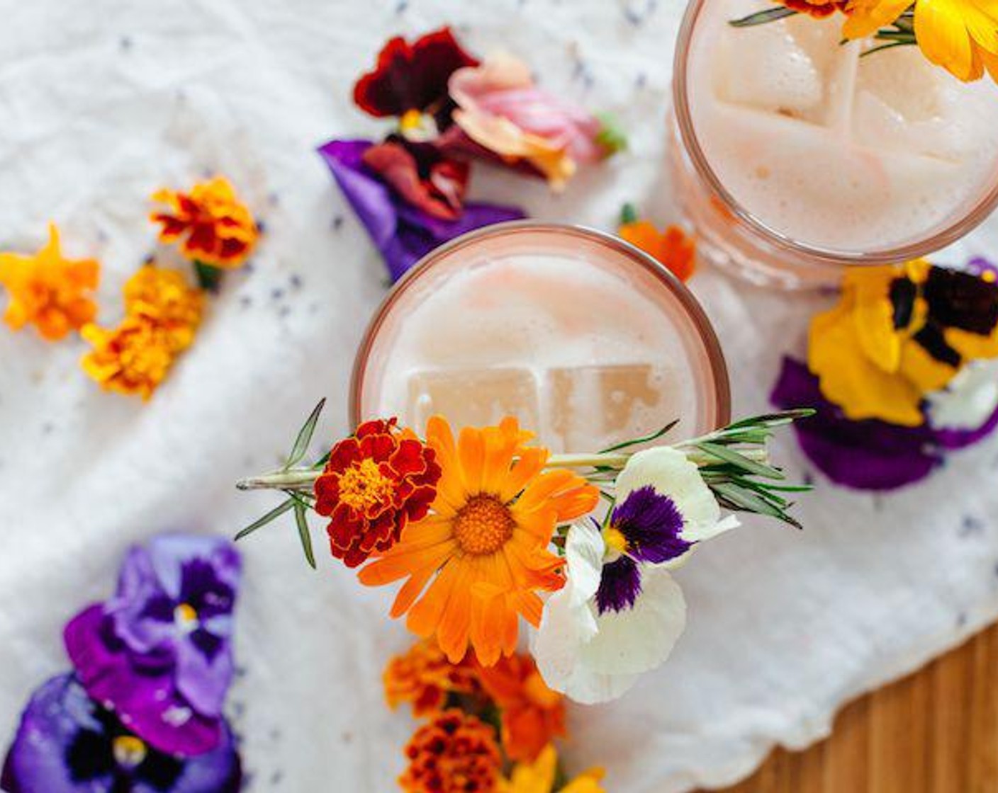Ein leckerer und einfacher blumiger Frühlingscocktail mit Mandelmilch und Lavendelextrakt.
