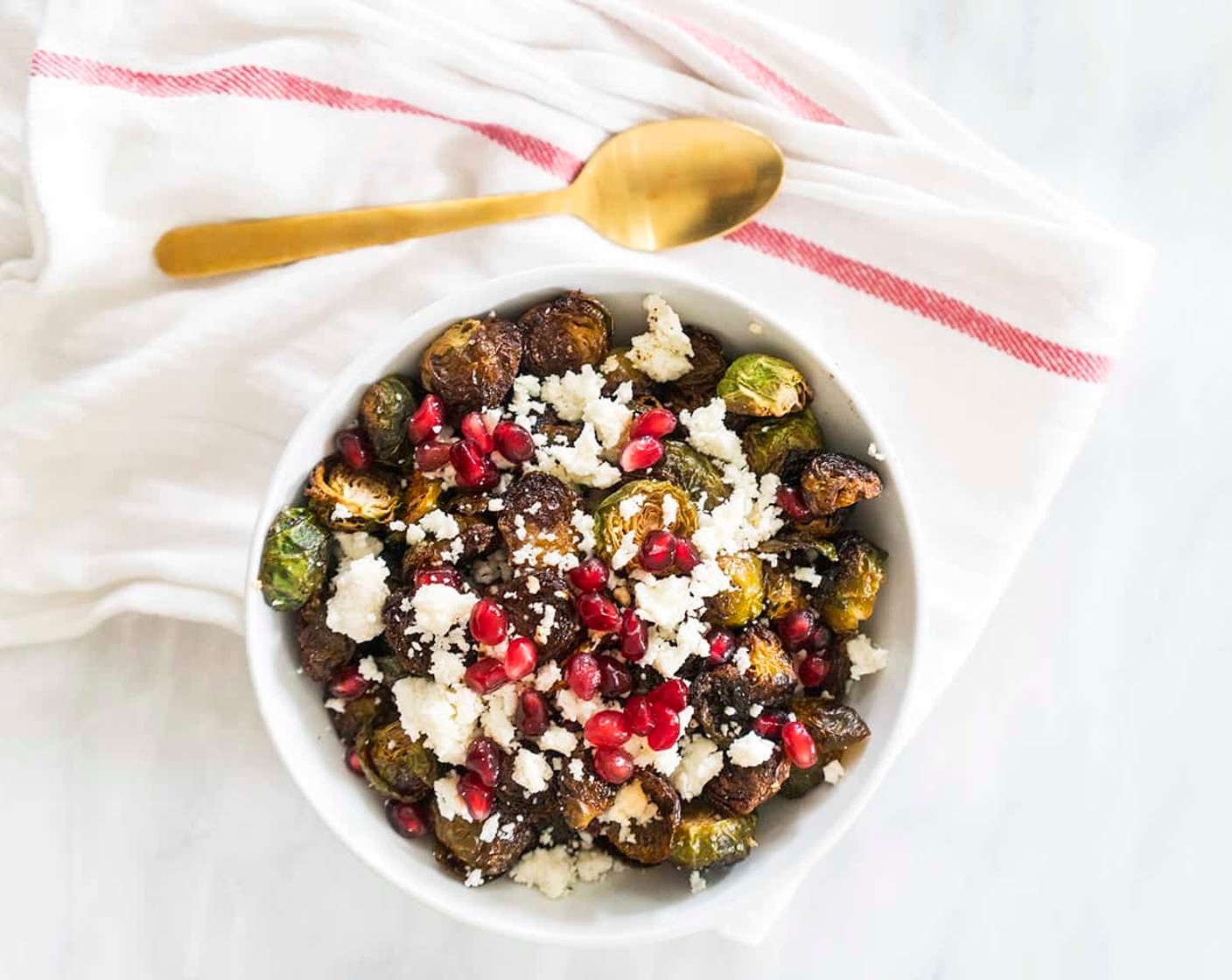 Der klassische Rosenkohl mal anders. Mit einer Kombination aus süssem Honig, frischer Orangenschale, zerbröckeltem Queso Fresco oder Feta getoppt mit knackigen Granatapfelkernen wird dieser Rosenkohl zu einem festlichen Genuss.