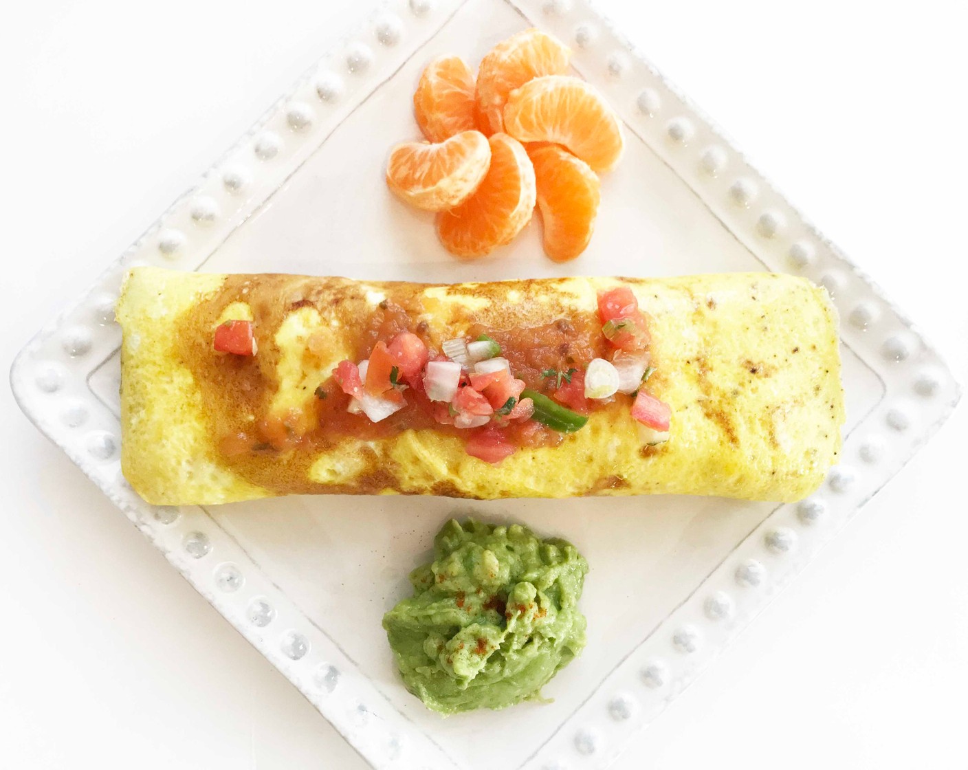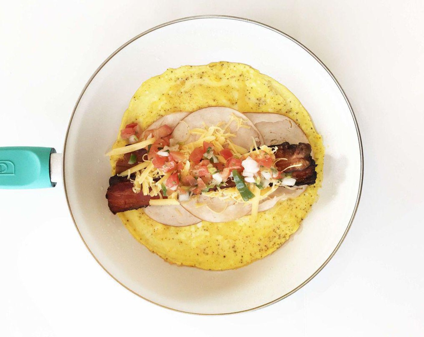 Ein "Inside-Out" Frühstücks-Burrito, der kohlenhydratarm und keto-freundlich ist. Die Eier werden als Wrap für all die Frühstücksfreuden von Speck, Salsa, Käse und sogar Pute verwendet!